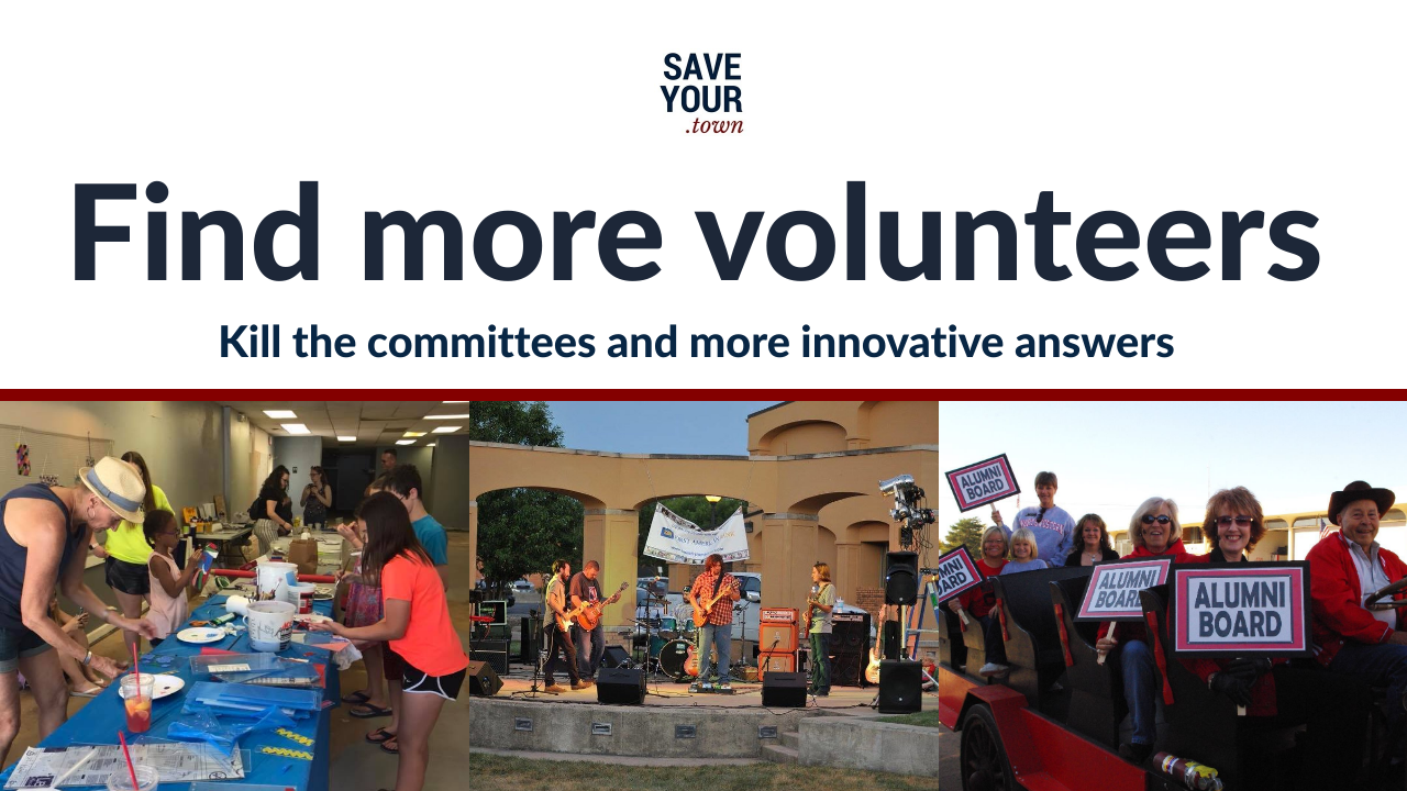 The secret to finding volunteers in small towns today is to let go of old ways that no longer serve us. You’ll discover things you don’t have to do anymore, and new Idea Friendly ways that will attract more new volunteers.